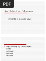 Mukha ng Pahayagan nakasaad dito ang mga pangunahing balita na nakalap sa loob at labas ng bansa 3. Mga Bahagi ng Kompyuter. Bahagi ng Pahayagan 1 Pang-unang Pahina o Ulo ng Balita 2 Editoryal 3 Balitang Lokal 4 Balitang Isports o Pampalakasan 5 Panlibangan at Katatawanan 6 Anunsyo o Patalastas 7 Balitang Pandaigdig 8 Balitang Pangkomersiyo at Pangkalakalan Meanings and examples can be found at.