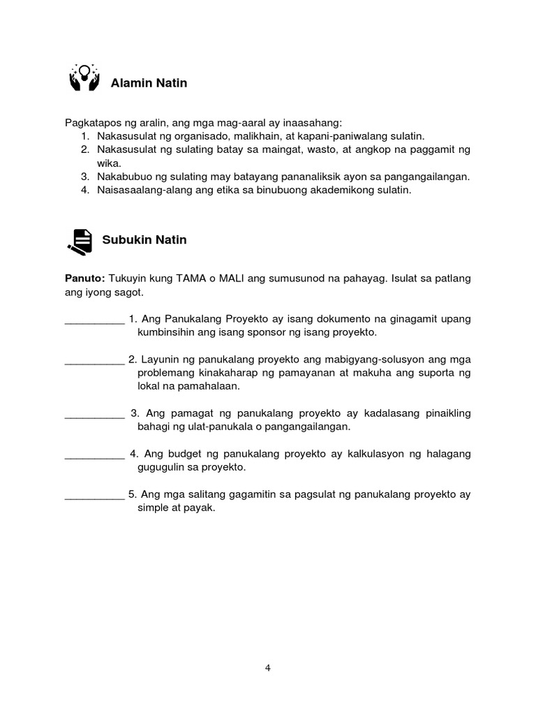 Lesson 14 Pdf Pagsulat Sa Filipino Sa Piling Larangan Akademik Panukalang Proyekto 1 Panukalang Proyekto Mga Batayang Kasanayang Dapat Na Matamo Course Hero