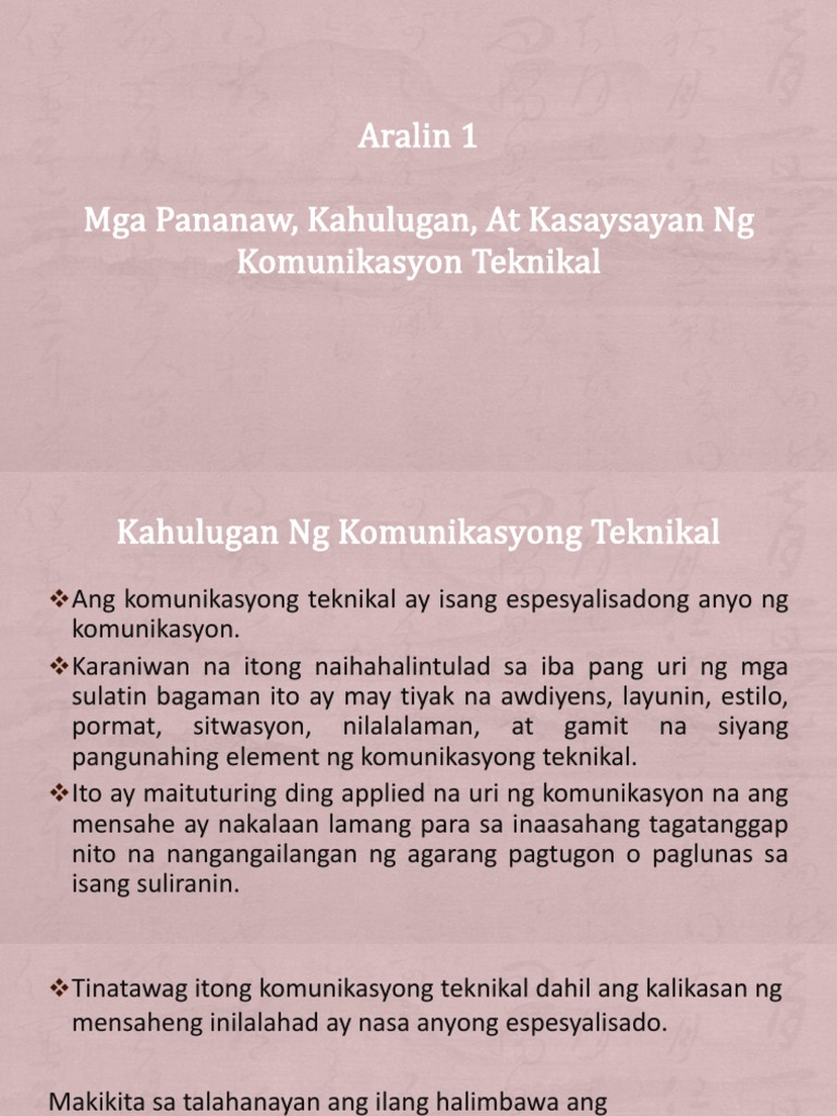 Pananaw kahulugan at kasaysayan ng komunikasyong teknikal. Kahulugan ng Komunikasyong Teknikal. M G A PA N A N AW K A H U L U G A N AT K A S AY S AYA N N G KO M U N I K A S Y O N G TEKNIKAL. Kahulugan ng Komunikasyong Teknikal.