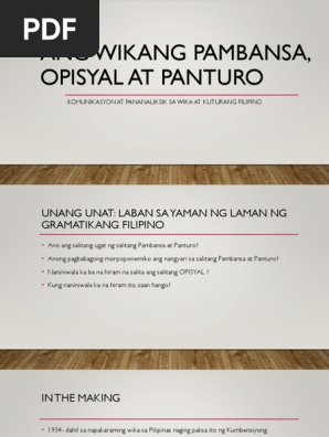 Ang Wikang Pambansa Opisyal At Panturo Pptx