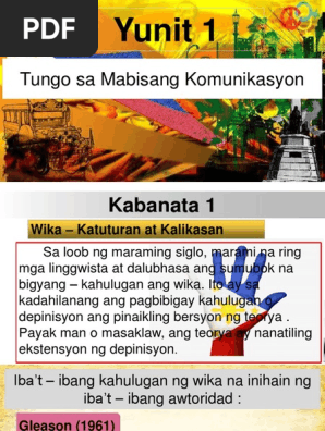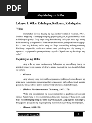 Ang wika ay malimit na binibigyang-kahulugan bilang sistema ng mga tunog masasabi arbitaryo na ginagamit sa komunikasyog pantao Hutch 1991. Alin lamang dito ay ang mga sumusunod na pagpapakahulugan. Kakayahan at Kapangyarihan ng Wika Sa nakaraang talakay malinaw na binibigyang- kahulugan ang wika bilang sistemang balangkas ng sinasalitang tunog.
