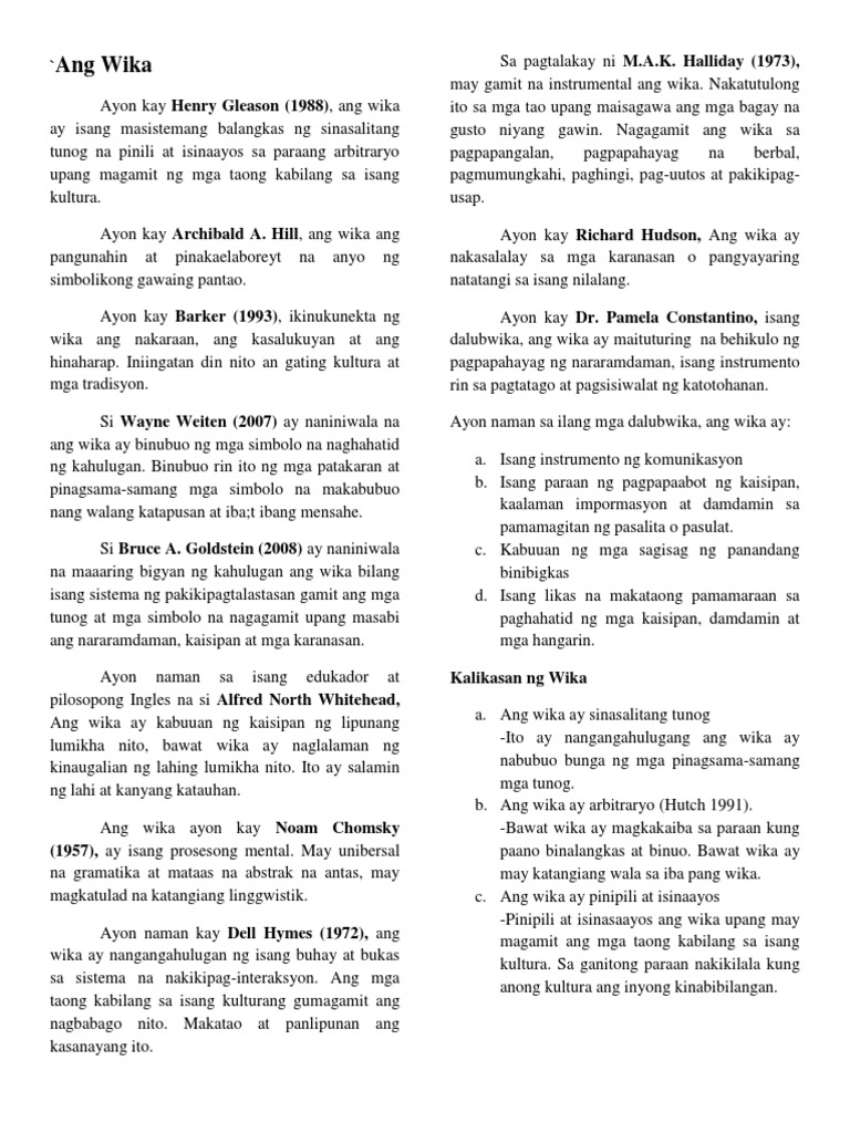 Depinisyon Ng Wikang Ayon Sa Iba T Ibang Manunulat Ano Ang Wika